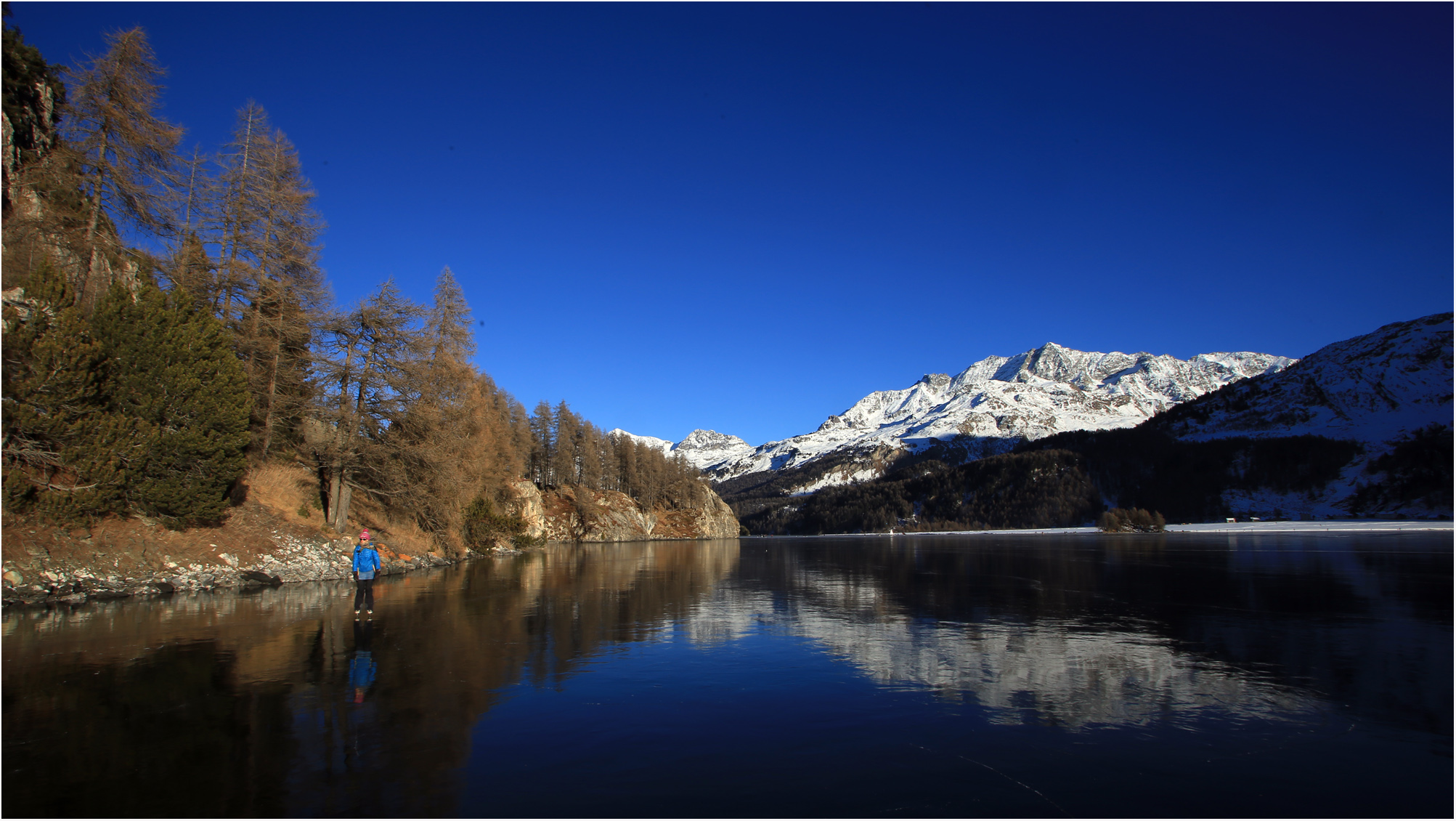 Ein Tag auf dem Spiegeleis des Silser Sees im Oberengadin.